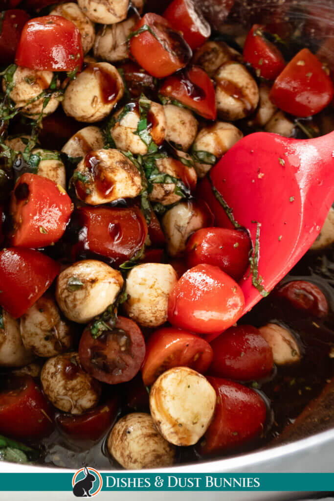 - Toss gently: Mix everything gently to combine, ensuring the tomatoes and bocconcini are well-coated with the dressing.