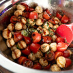 Simply skewer cherry tomatoes and bocconcini, brush with olive oil, and grill until lightly charred. Assemble the salad as usual and enjoy a smoky twist on this classic dish.