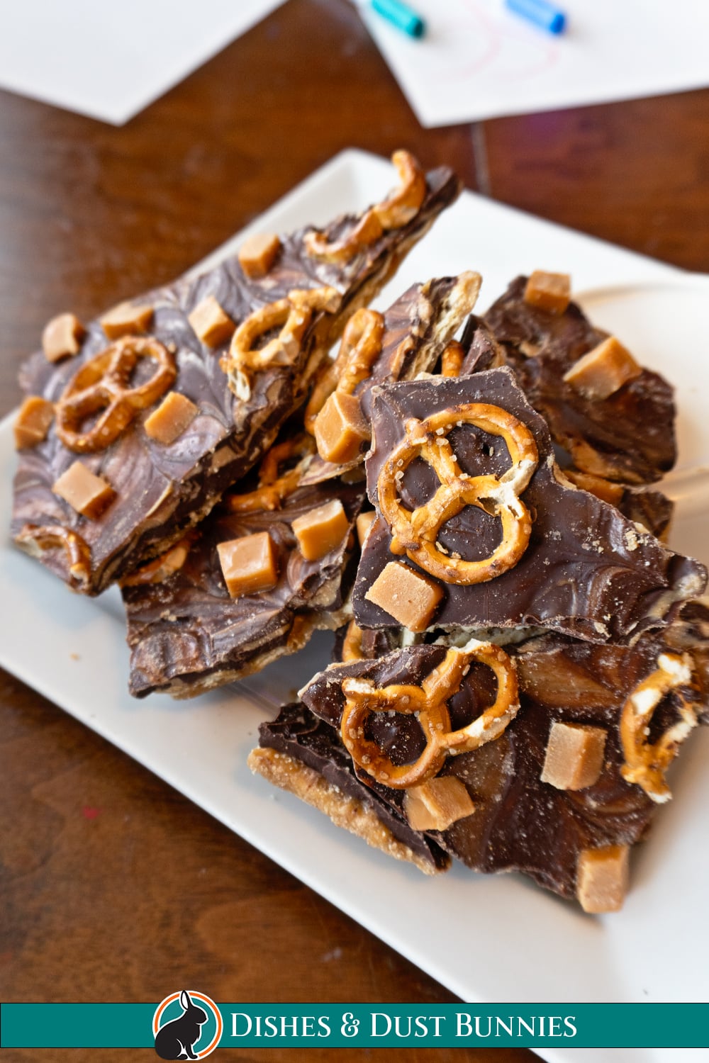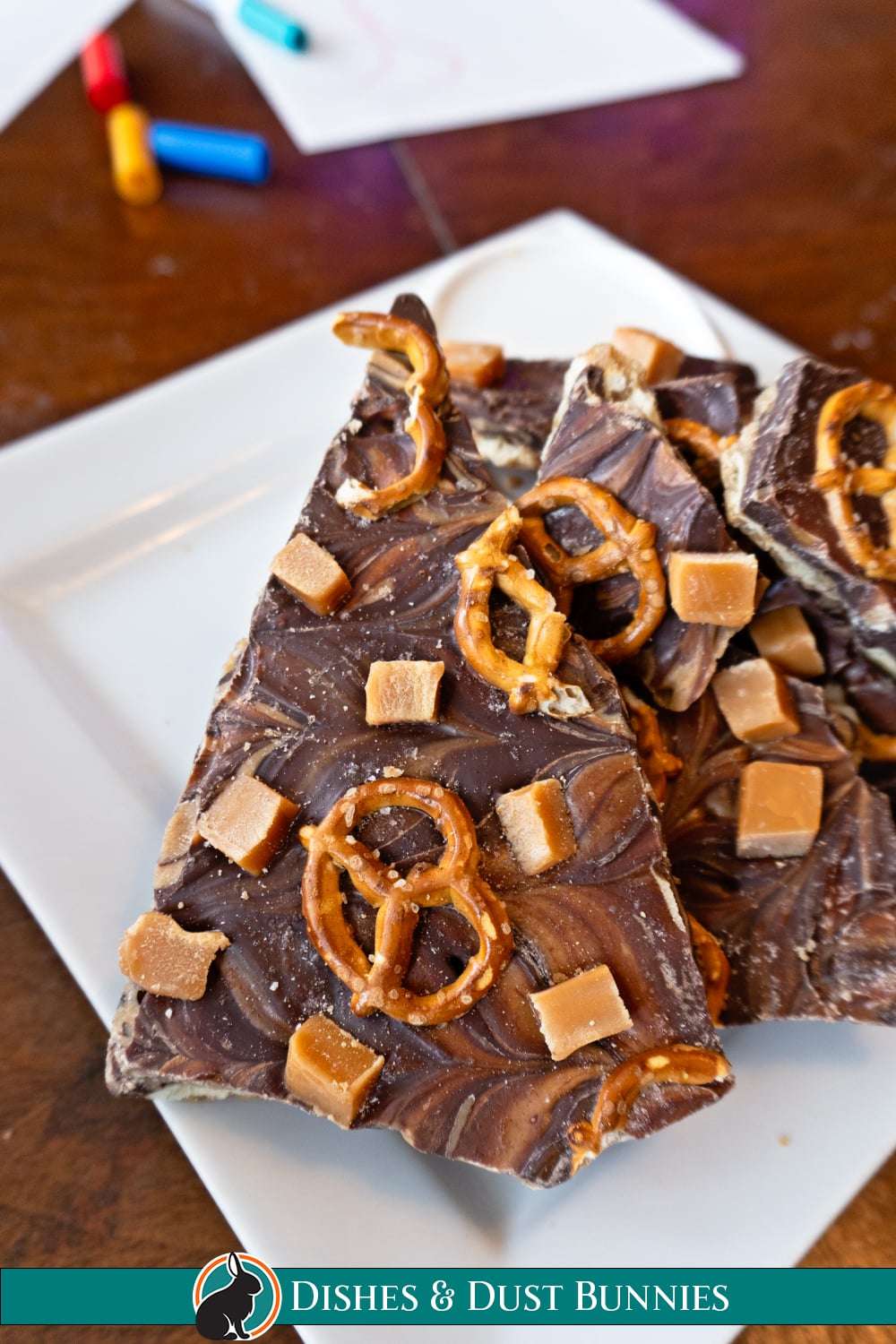 For the pretzels, mini twists work well, but you can also use pretzel snaps or break up larger pretzels if that’s what you have on hand.