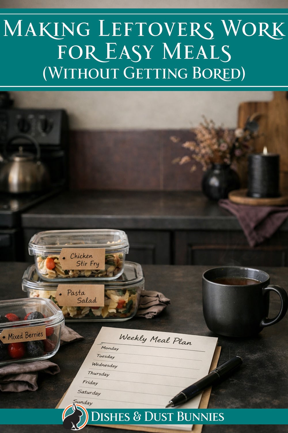 - How to Plan Meals So Leftovers Are Easy to Use (coming soon) — plan meals with leftovers in mind so they’re easier to reuse