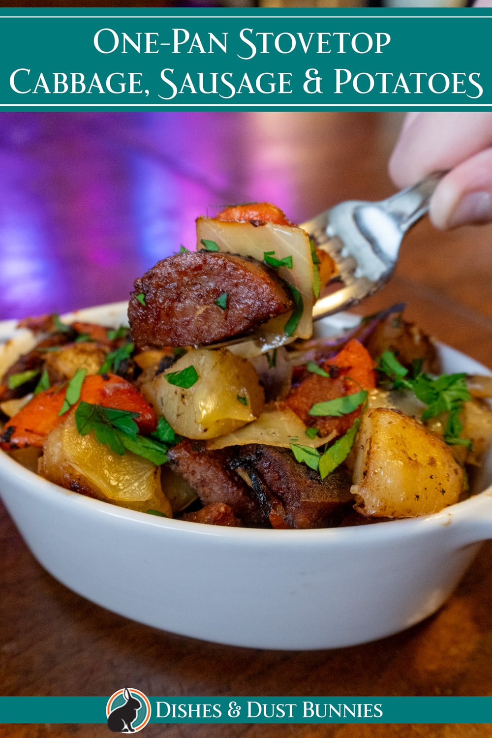 A simple, hearty one-pan dinner made on the stovetop with smoked sausage, tender potatoes, carrots, and cabbage. Cozy, flavorful, and perfect for busy weeknights.
