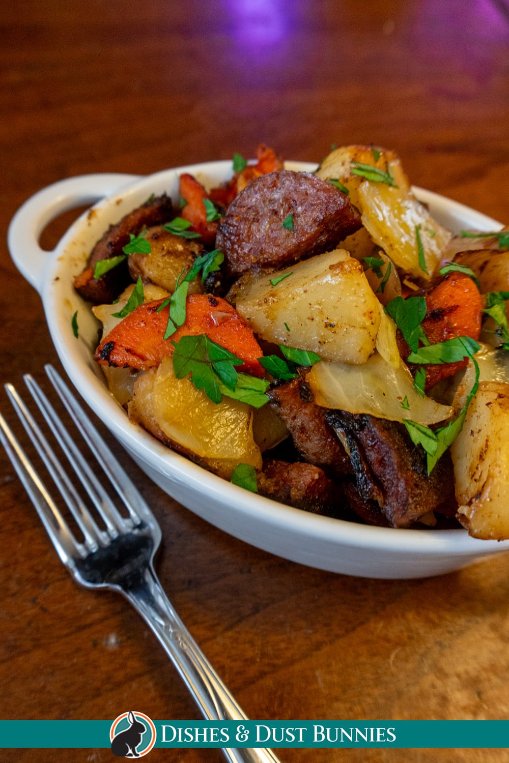 (Note: the size/amount of your sausage is up to you! I used a 700g smoked sausage!) - 3–4 medium potatoes, chopped into bite-sized pieces