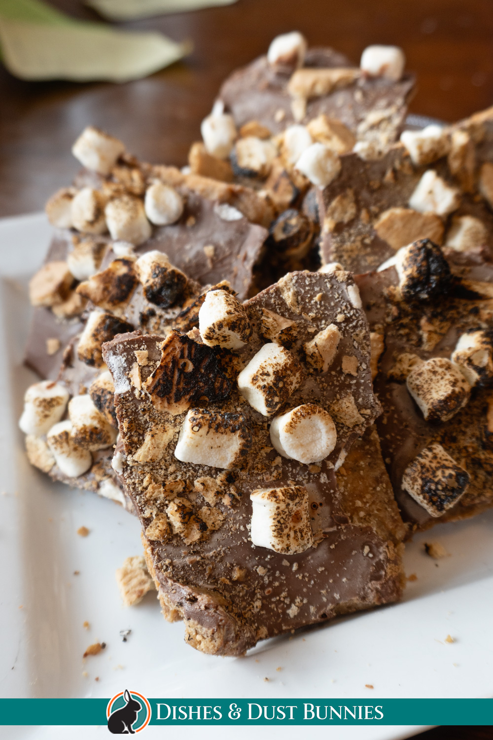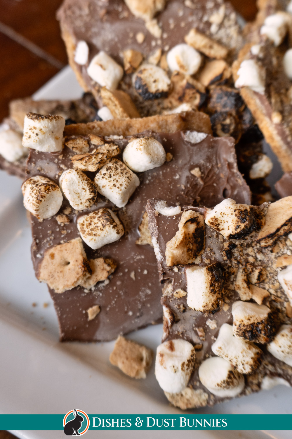 Optional: Lightly toast the marshmallows with a kitchen torch for a toasted campfire-style flavor. If the chocolate softens while torching, place the tray back in the refrigerator for a few minutes to firm up again before breaking into pieces.