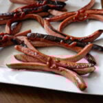 - Make two more cuts on each end, so that each end of the hot dog has 4 sections. These will be the spider legs that curl when cooked.